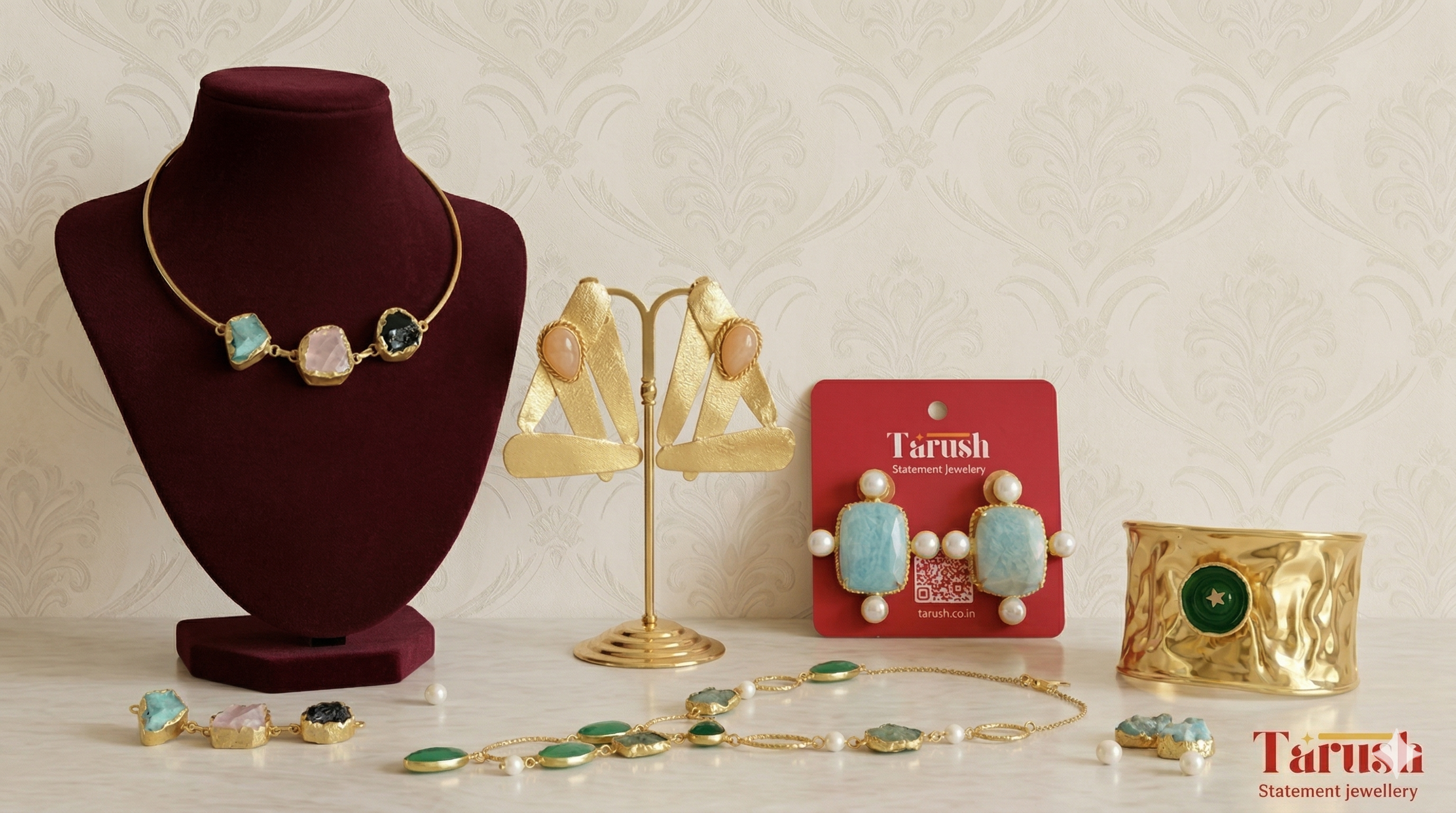 18 kt Gold Plate - Kashmiri Jhumka Green and Pink - Perfect for your Festive Wear - Very Light Weight